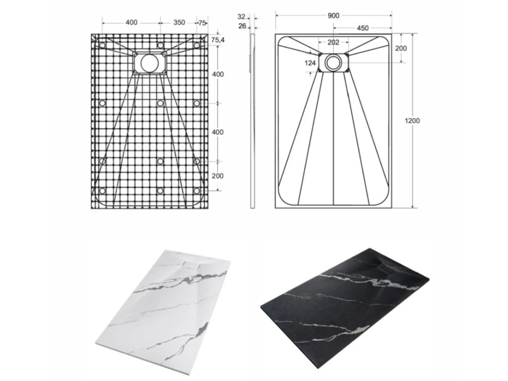Elegantná ultratenká sprchová vanička VEXO MARBLE ČIERNA je vyrobená zo špeciálneho SMC materiálu. Dodáva sa vrátane sifónu, ale bez nožičiek. Krytka sifónu je súčasťou balenia.