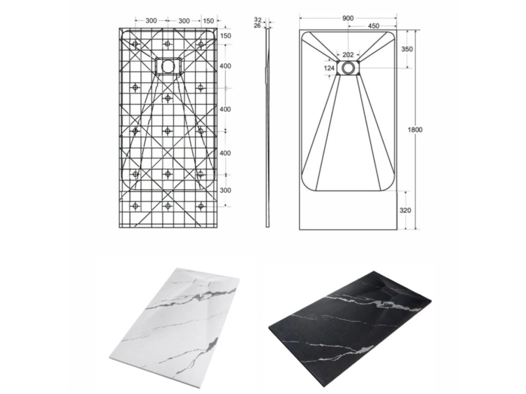 Elegantná ultratenká sprchová vanička VEXO MARBLE ČIERNA je vyrobená zo špeciálneho SMC materiálu. Dodáva sa vrátane sifónu, ale bez nožičiek. Krytka sifónu je súčasťou balenia.