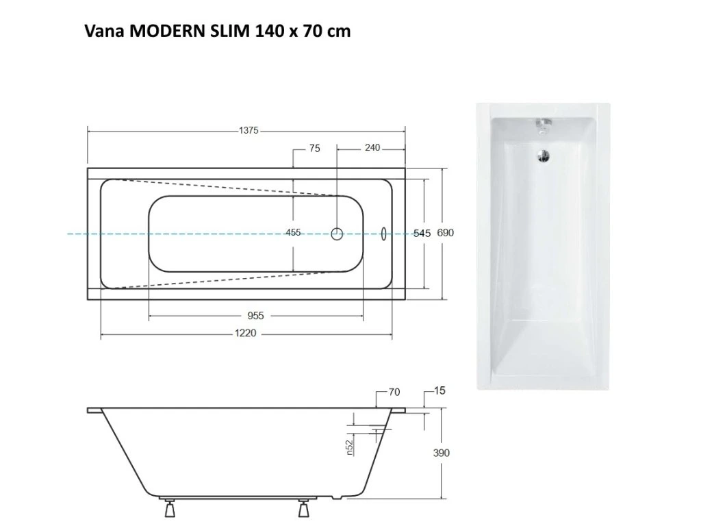 BESCO Obdĺžniková vaňa MODERN SLIM Nožičky k vani - S nožičkami, Rozmer vane - 140 × 70 cm VANMOD14SLIM+OLVPINOZ