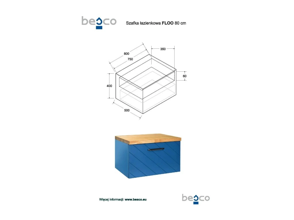 Populárny elegantný dizajn , široká farebná škála (štyri farebné varianty - biela matná, modrá matná, zelená matná a čierna matná), kvalitné spracovanie a moderné frézovanie na čele šuplíka, to je naša nová séria FLOO . Súčasťou dvierok je aj značkový tlmič dorazov pre tzv. tiché dovieranie (soft-close) . Nábytok dodávame v zmontovanom stave. K spodnej skrinke si musíte doobjednať hornú dosku pod umývadlo, ktorú je možné objednať v troch farebných variantoch (čierna, mramor a dub).