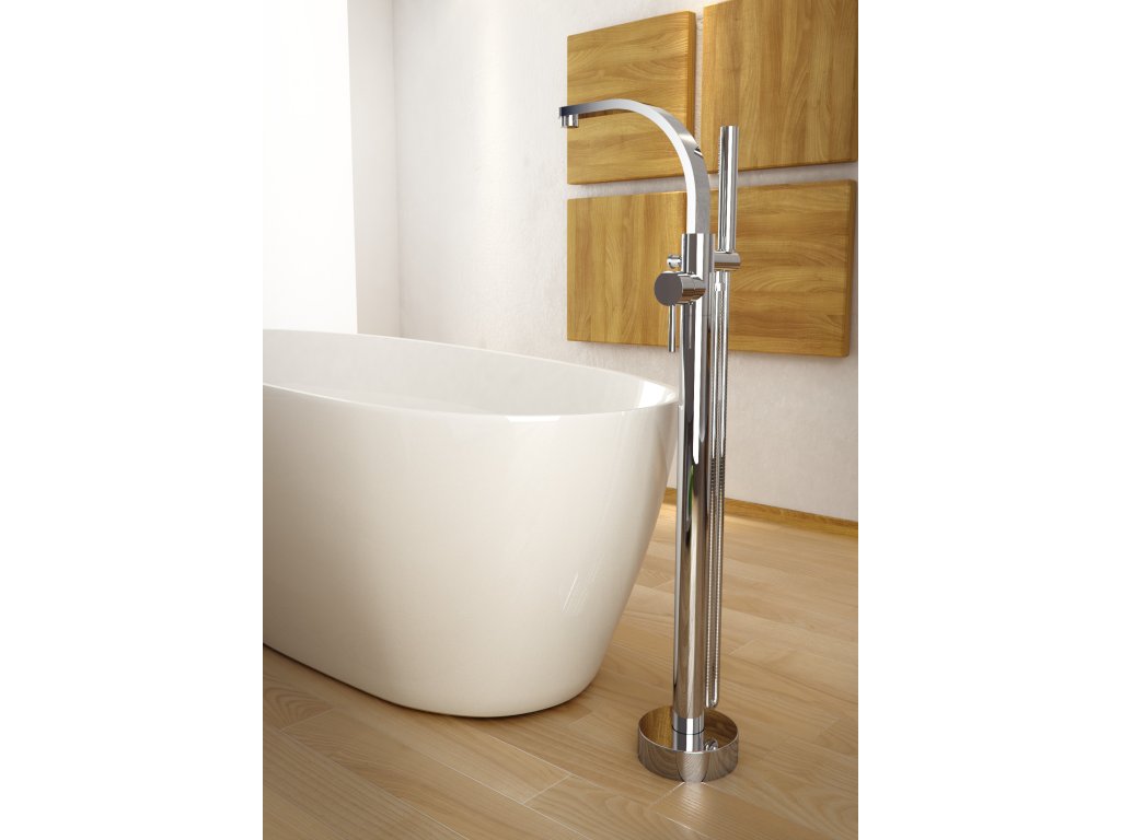 Vaňová stojanková batéria je dodávaná vrátane príslušenstva (sprchová ružica a hadica) .