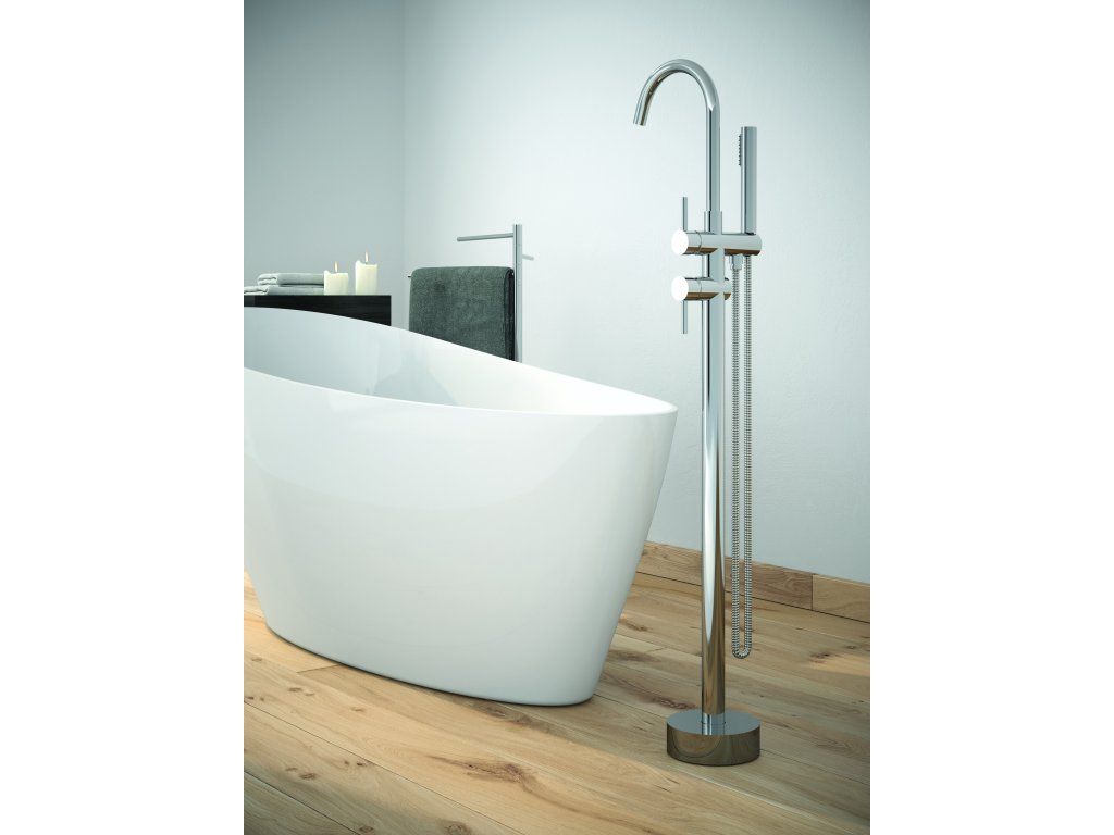 Stojanková batéria do podlahy vyzerá skvele v kombinácii s voľne stojacou vaňou.