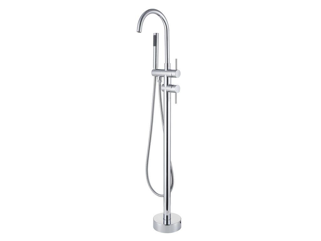 Vaňová stojanková batéria je dodávaná vrátane príslušenstva (sprchová ružica a hadica) .