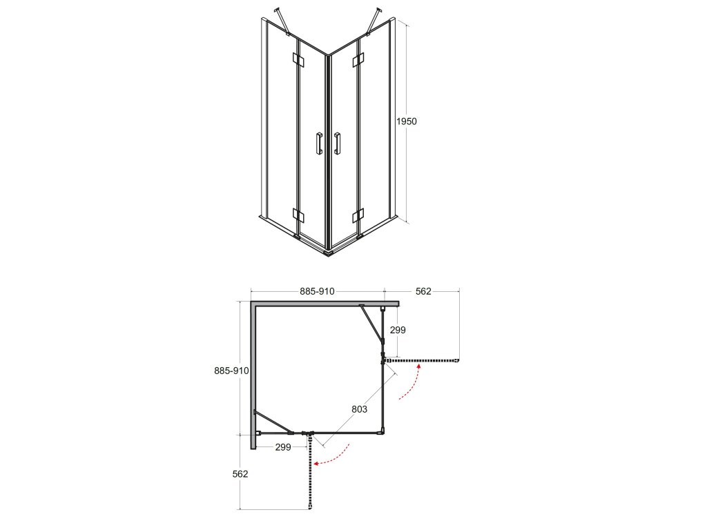 - 90 × 90 × 195 cm (montážny rozmer 88,5 - 91 cm)