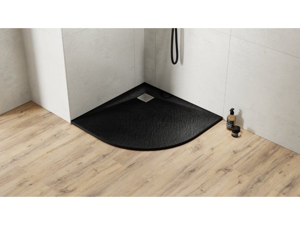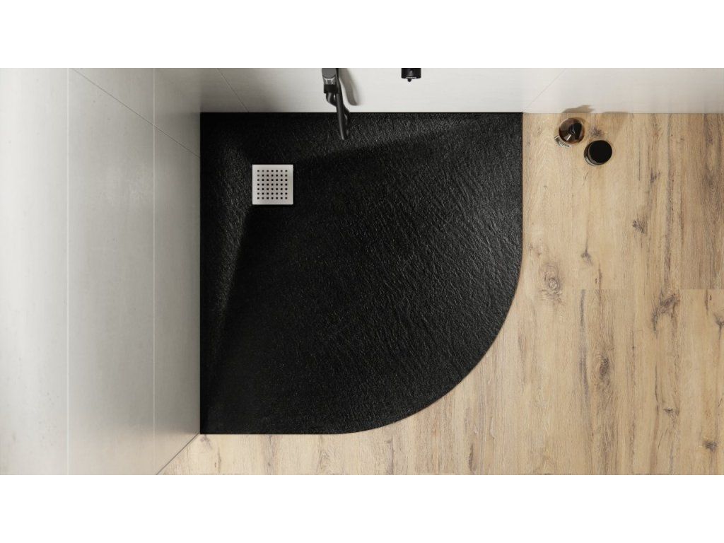 BESCO Štvrťkruhová sprchová vanička VEXO - čierna VANKVEX90CTVRTB