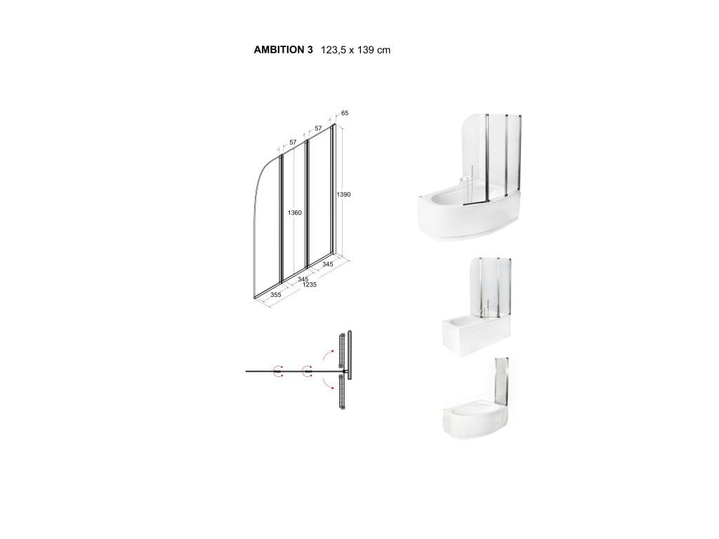 Vaňová zástena AMBITION 3 vyniká vysoko kvalitným spracovaním a spoľahlivou funkčnosťou všetkých súčastí a materiálov.