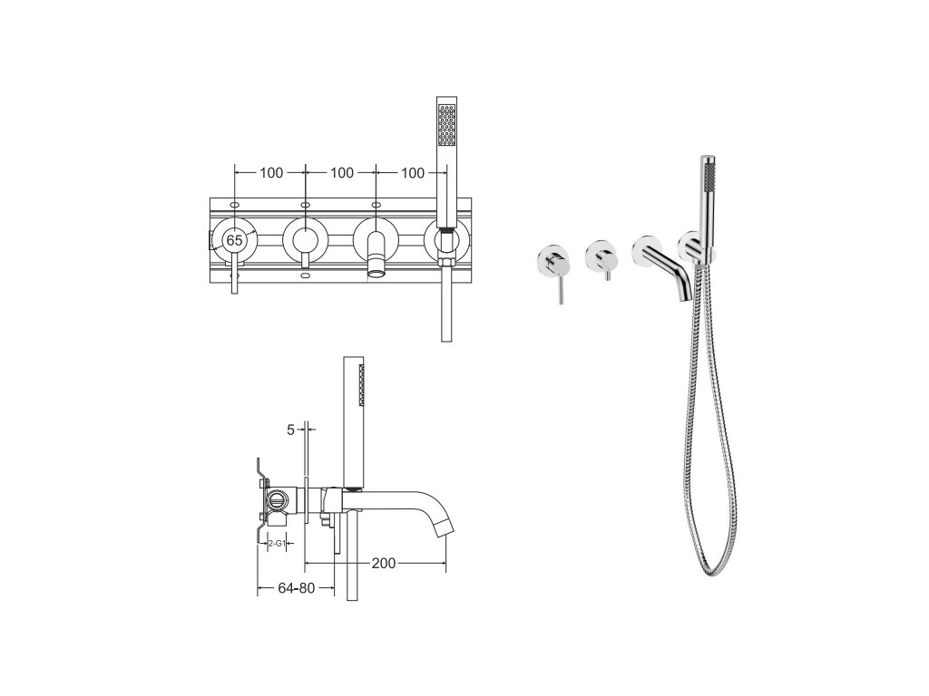 Besco Veo 4-otvorová skrytá vaňová súprava, čierna, BW-V4P-CZ