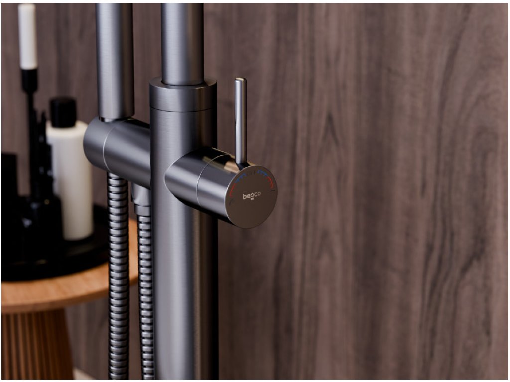 - Kompaktná páka na zmenu teploty vody a prepínanie medzi sprchou a hlavovou sprchou