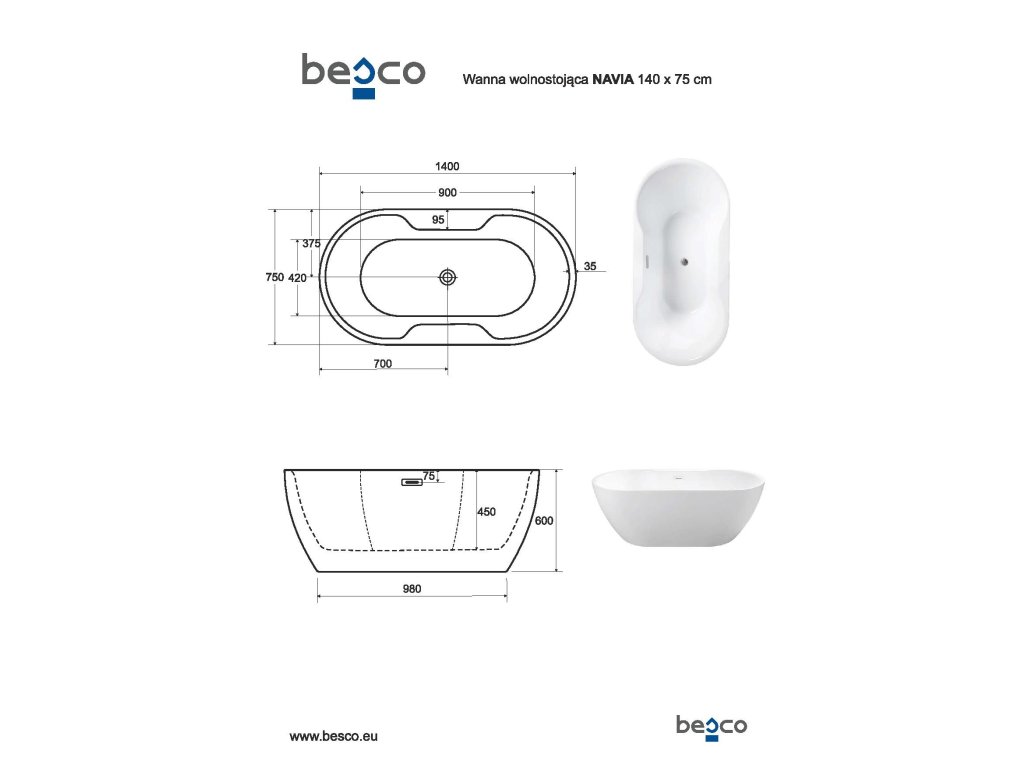 BESCO Voľne stojaca vaňa NAVIA Glam - grafitová Farba - GLAM 03 - grafitová, Farba sifónu - Biela, Rozmer vane - 140 × 80 cm VANNAVIA140WG3