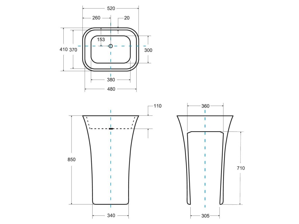 Rozmer voľne stojaceho umývadla: