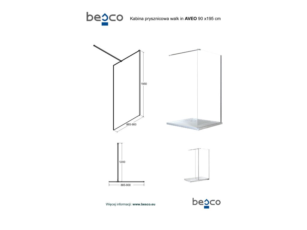 BESCO Walk-in sprchovací kút AVEO Farba rámu - Chróm/Leštený hliník (ALU), Pevná stena - Bez pevnej steny, Rozmer A - 90 cm, Rozmer C - 195 cm, Výplň - Číre bezpečnostné sklo - 8 mm BCAVEO90
