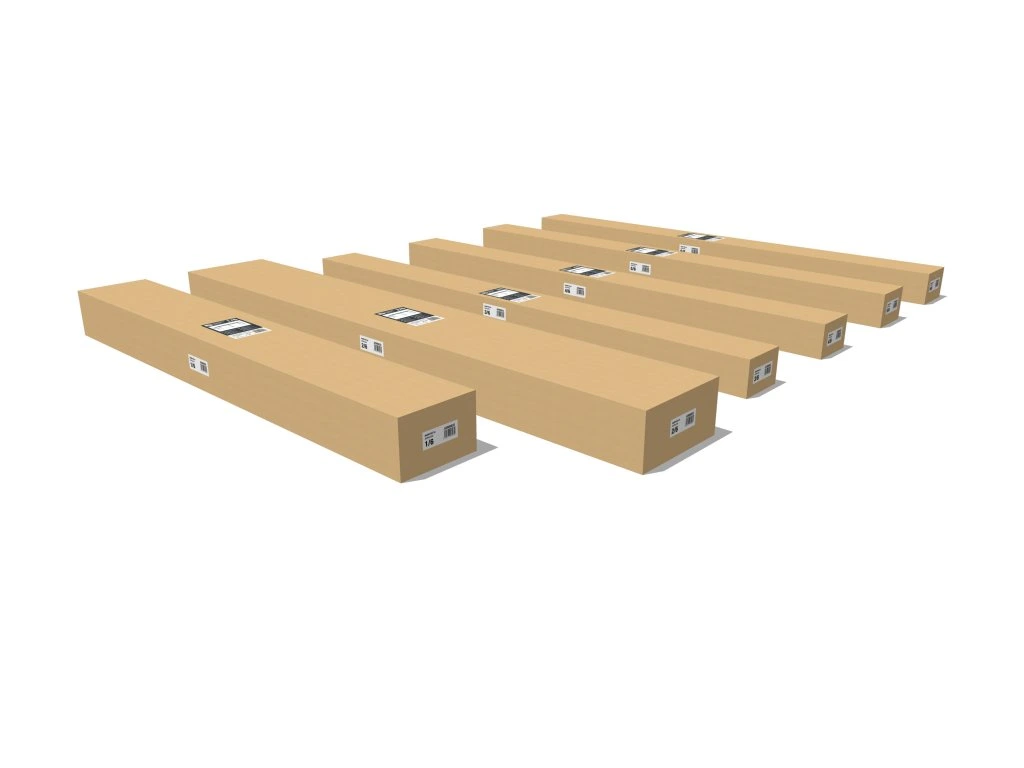 - Box 5: 290 x 21 x 23,5 cm, 32,6 kg