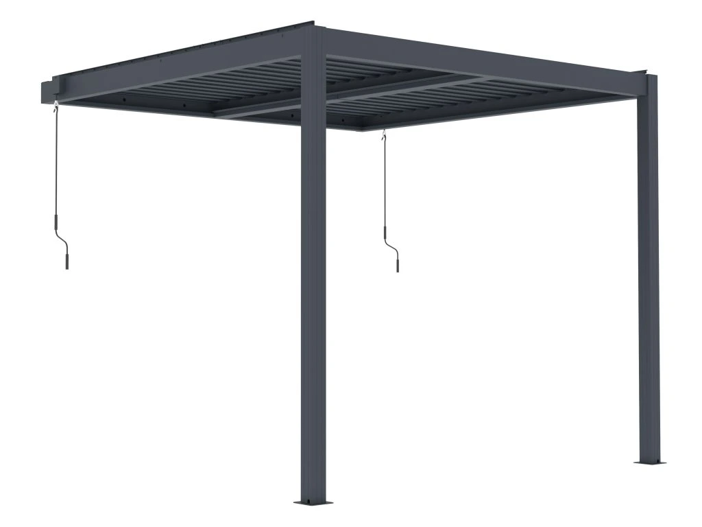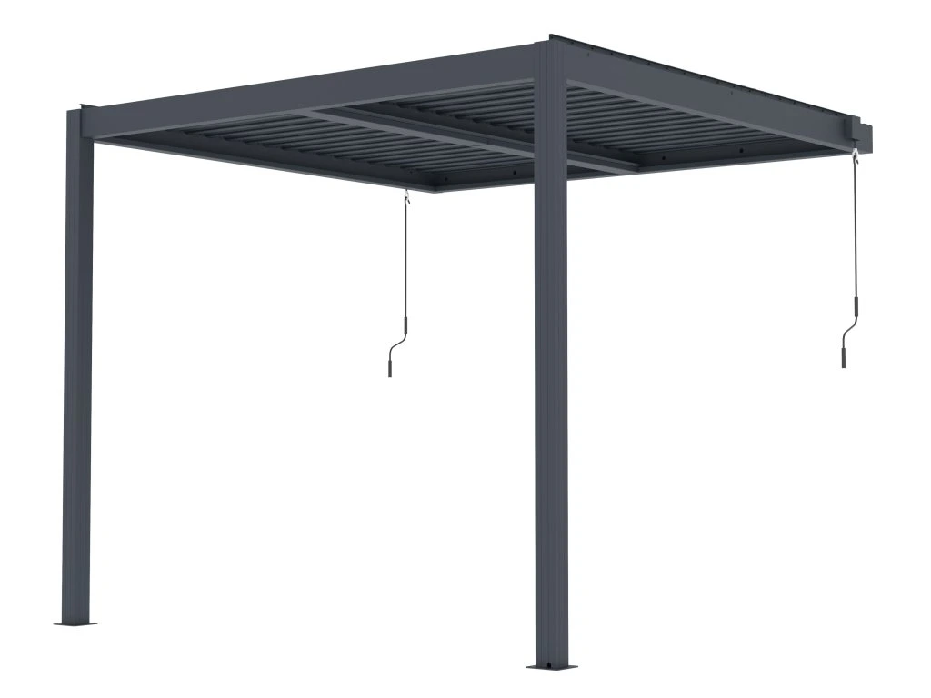 Manuálne nastaviteľné lamely umožňujú rýchlo reagovať na aktuálne počasie. Otváranie zabezpečuje príjemné prúdenie vzduchu a svetla, zatváranie zasa spoľahlivú ochranu pred snehom a dažďom. Vďaka možnosti nastavenia lamiel až do uhla 110° môžete nastaviť sklon podľa potreby v závislosti od polohy slnka na oblohe. Pergola tak vytvára ideálny priestor na oddych a posedenie s rodinou a priateľmi bez ohľadu na to, aké je vonku počasie.
