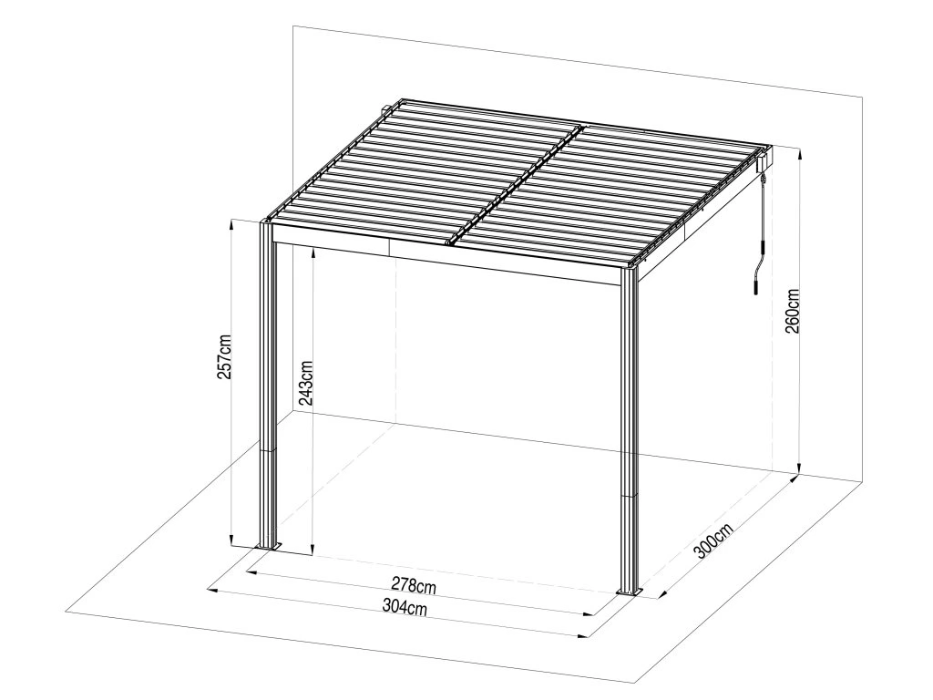 - Vonkajšie rozmery (š x v x h): 3,04 x 2,6 x 3 m