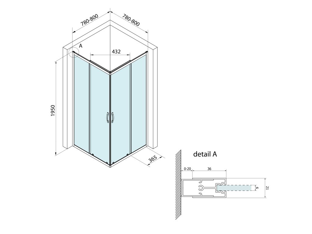 Bruckner BORG štvorcová sprchová zástena 800x800x1950 mm 751.180.1