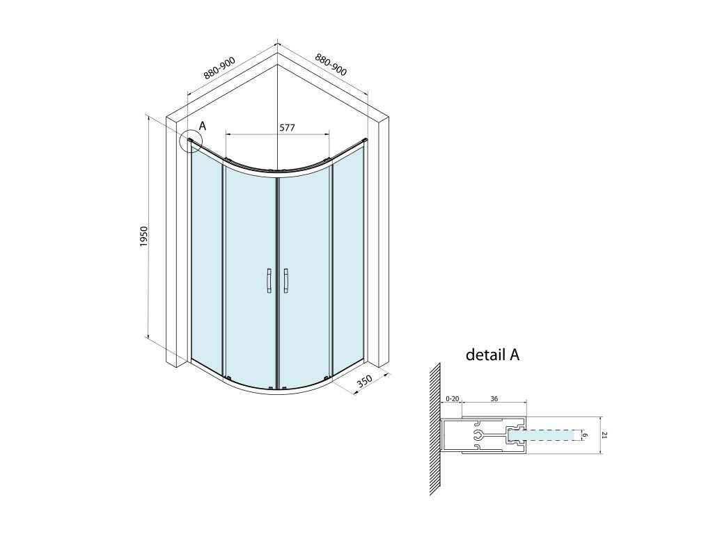Bruckner BORG štvrťkruhová sprchová zástena 900x900x1950 mm, R550, číre sklo 751.090.1