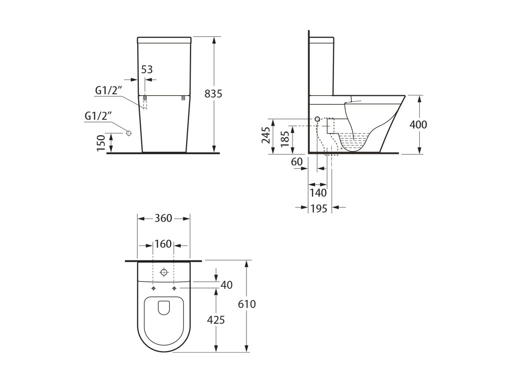 Bruckner DARIO RIMLESS WC kombi misa s nádržkou, spodný/zadný odpad, biela 201.428.4