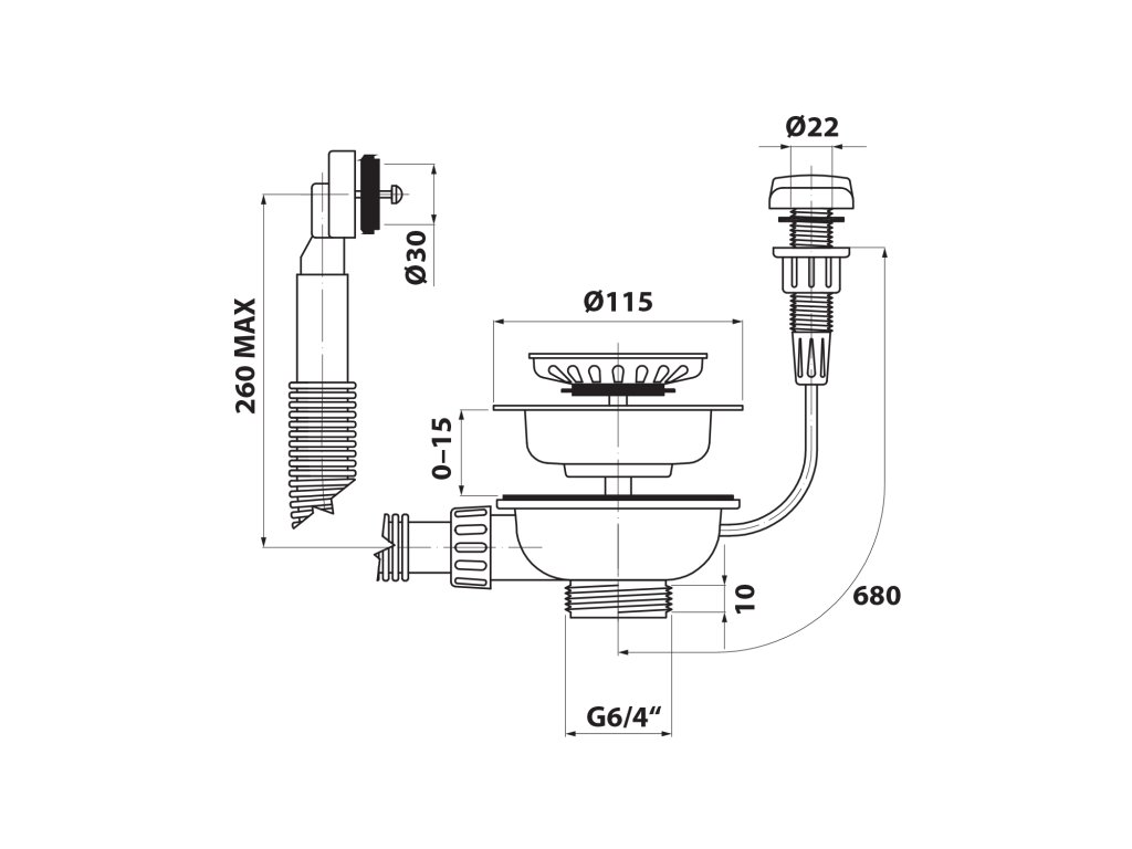 Bruckner Nerezová výpusť drezu 6/4" s prepadom a ovládaním, nerez 155.122.1