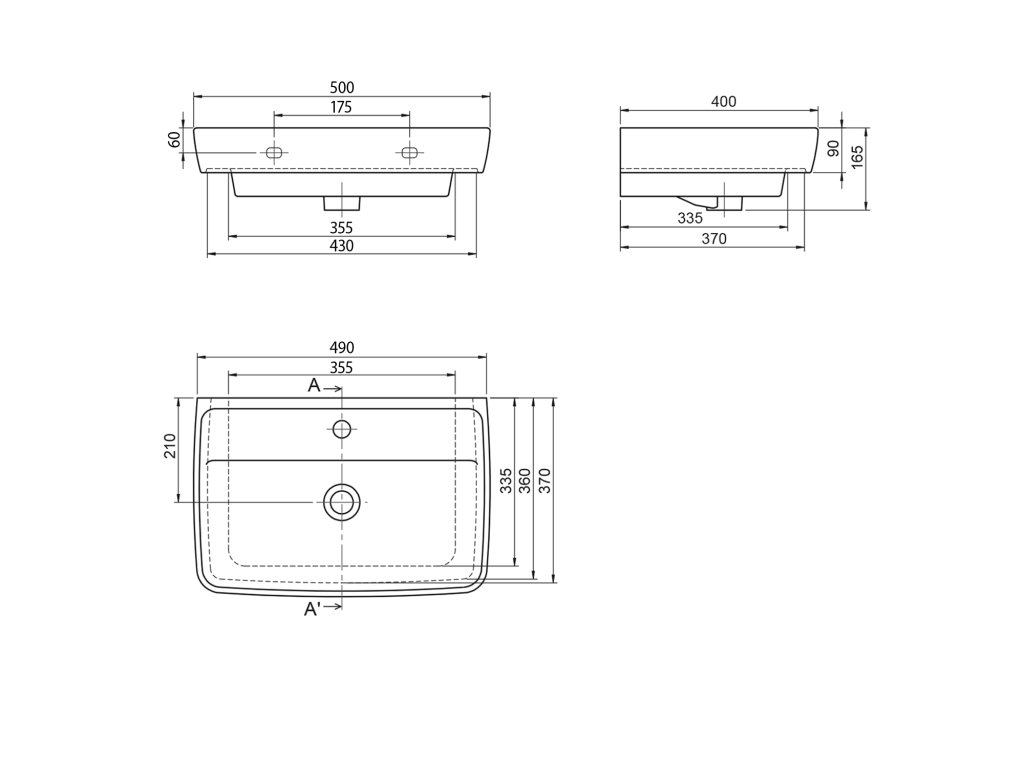CERASTYLE DURU keramické umývadlo 50x40cm, biela TU0350