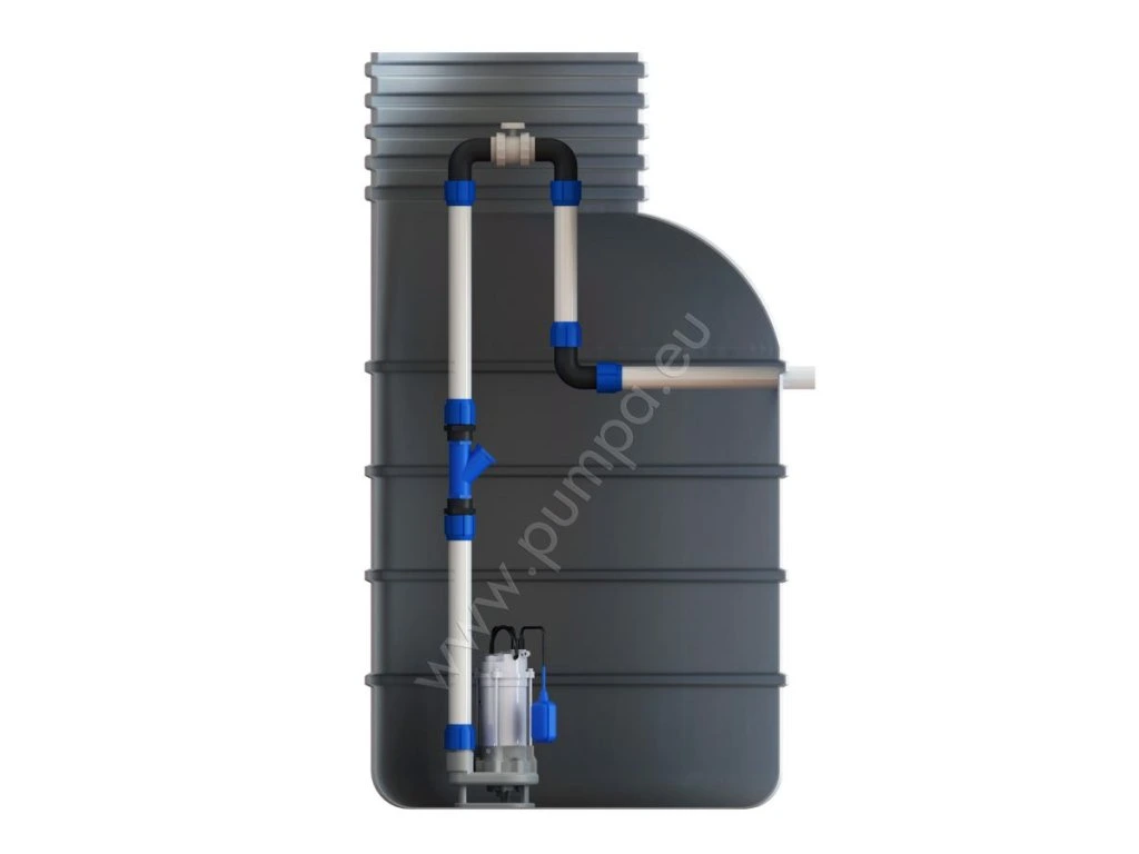 Čerpacia šachta BLACK LINE BOX 1 VP PQD je určená na čerpanie splaškovej a dažďovej vody. Čerpacia šachta je vyrobená z materiálu PEHD a je vybavená ponorným odstredivým čerpadlom PUMPA blue line PQD s rezacím zariadením, ktoré je ovládané externým plavákovým spínačom.