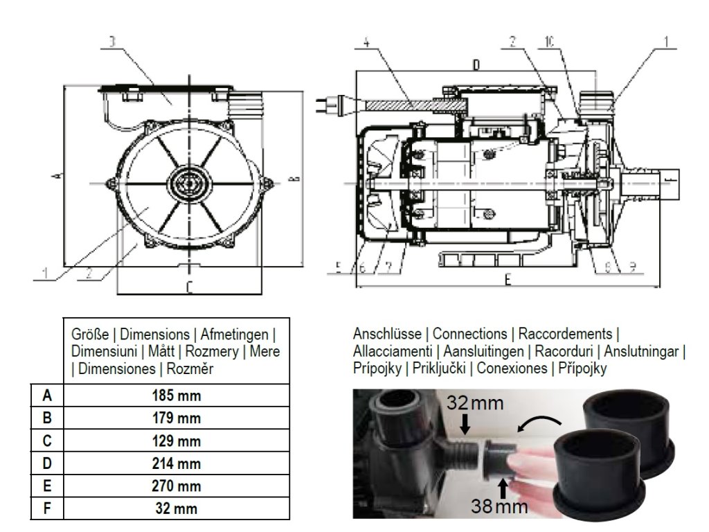 | Pripojenie vstupnej a výstupnej strany 32/38 mm |