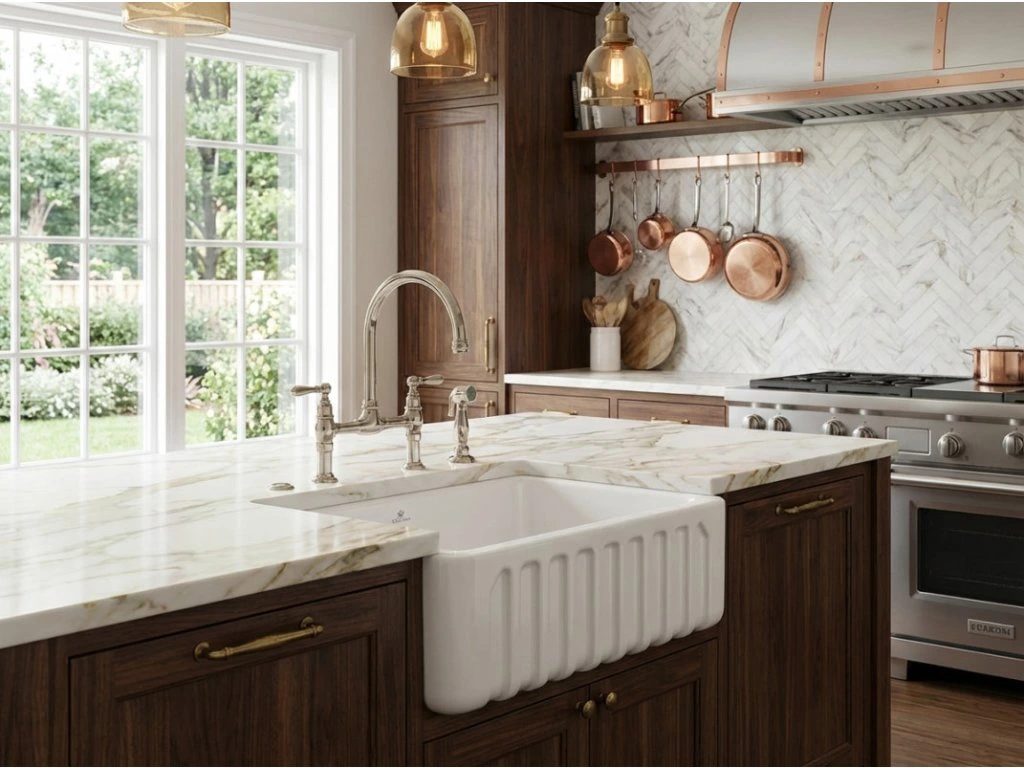 Luxusné umývadlo francúzskej značky Chambord Louis 795 niekedy ho nájdete aj pod názvom Chambord Louis II. Kuchynský drez Louis 795 vás očarí svojím sofistikovaným vrúbkovaným čelom. Vďaka svojmu rafinovanému a mimoriadne sofistikovanému vzhľadu dodá vašej kuchyni zmes prestíže a histórie. Je štýlový nielen vo vidieckej kuchyni, ale svoje miesto si nájde aj v modernom dizajne.