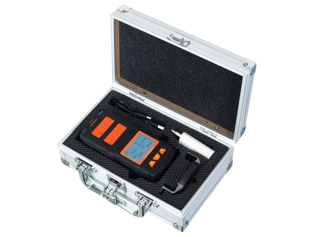 Pomocoudetektora plynov Ermenrich NG60 presne určíte koncentráciu horľavých plynov, sírovodíka a kyslíka vo vzduchu. V závislosti od typu plynu sa meranie vykonáva v % LEL (dolná hranica výbušnosti), ppm alebo VOL. V praktickom hliníkovom kufríku nájdete aj USB kábel so sieťovým adaptérom.