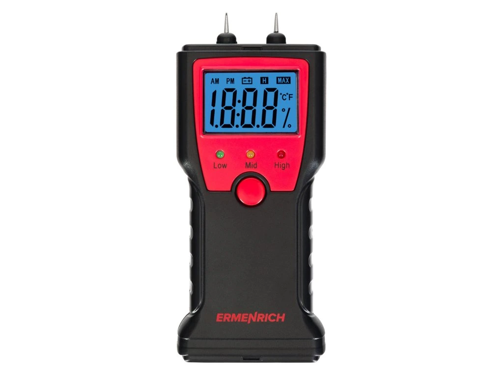 Kolíkový detektor Ermenrich Wett MW10 používajte na meranie vlhkosti dreva, stavebných zmesí a malty. Tento praktický pomocník vám uľahčí prácu. Nielenže zistíte vlhkosť materiálu, ale zároveň môžete merať aj teplotu. Ukáže vám hodnotu v stupňoch Celzia alebo Fahrenheita.