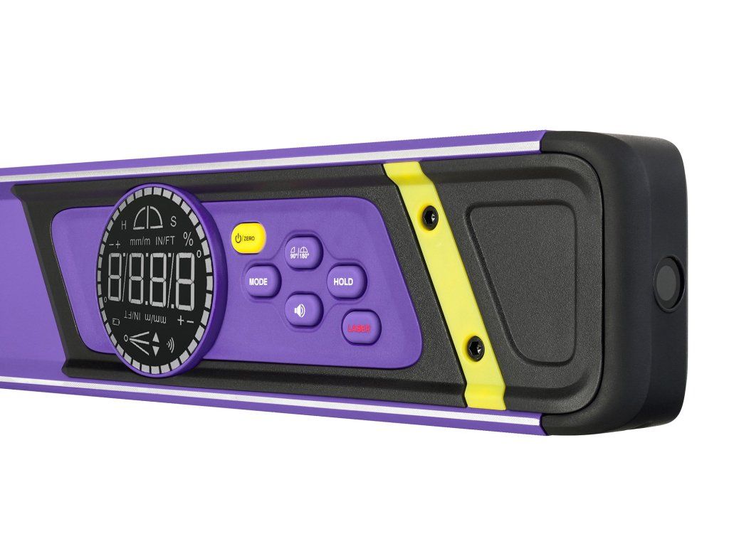 Zabudovaný červený laser s výkonom <1 mW premieta dve kolmé čiary, ktoré uľahčujú presné vyrovnanie bez potreby ručného označovania. Hliníkové telo doplnené plastom ABS, silikónom a elastomérom poskytuje vysokú odolnosť proti nárazom. Stupeň krytia IP54 chráni zariadenie pred prachom a striekajúcou vodou a magnetická základňa umožňuje pevné uchytenie na kovových povrchoch.