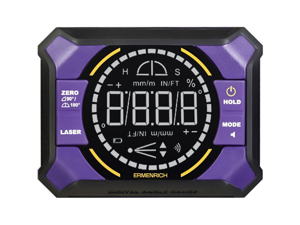 Digitálna laserová vodováha Ermenrich Verk LQ50 poskytuje presné meranie uhlov s odchýlkou ±0,1° a praktické laserové značenie na rýchlu prácu. Jej kompaktný dizajn s dĺžkou 60 mm, magnetická základňa a prehľadný LCD displej z nej robia ideálny nástroj pre profesionálov aj domácich majstrov.