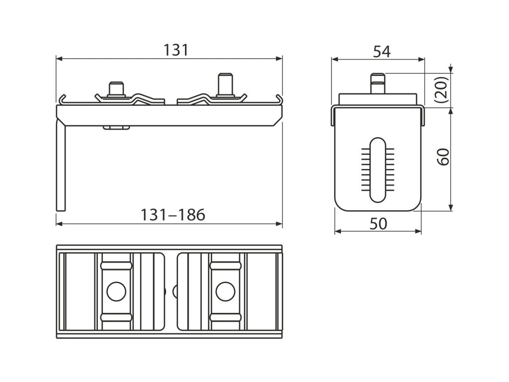 Držiak profilov ALCA, dvojitý 186 mm AS-P013