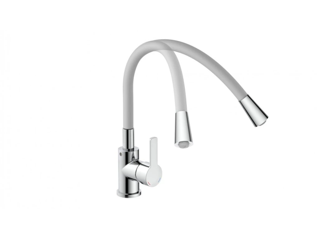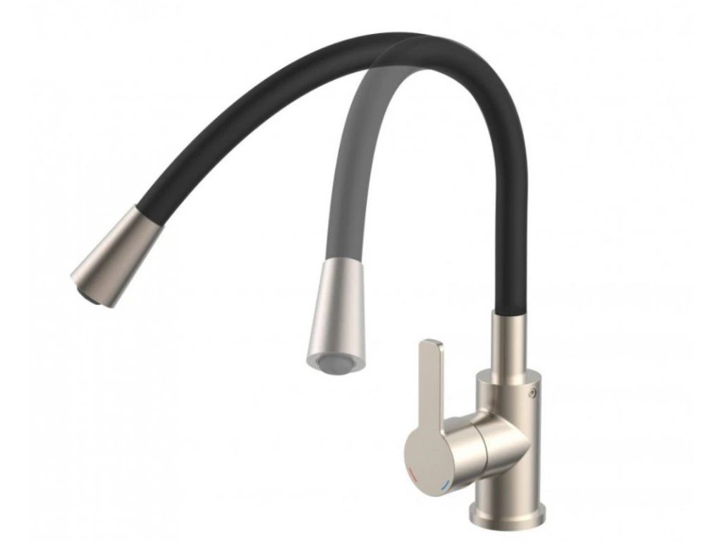 Drezová batéria Eisl Flexo je k dispozícii v dvoch farbách - s flexibilnou výpustou vo svetlosivej alebo v čiernej. Kombinácia otočnej výpuste a flexibilného výtoku robí z batérie ideálnu voľbu pre dvojité drezy. Kuchynská batéria má funkciu studeného štartu, t. j. v strednej polohe páky tečie len studená voda.