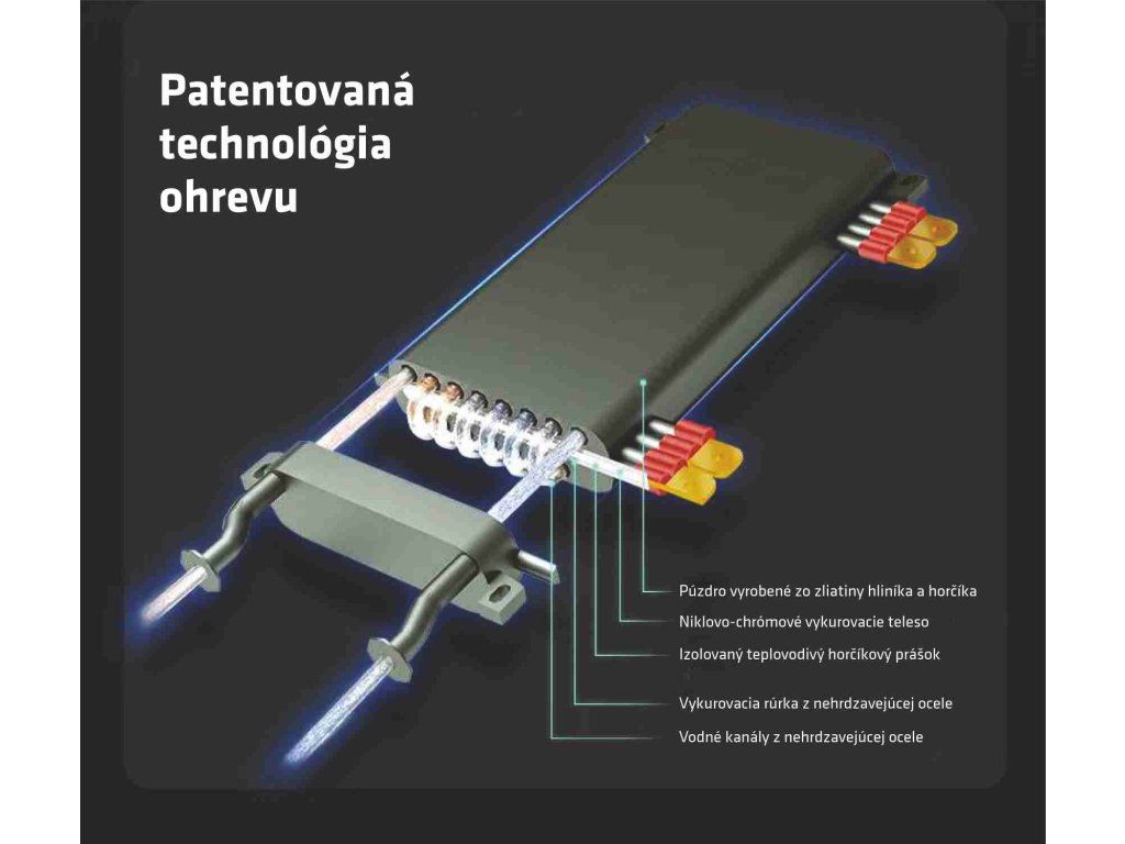 Na výrobu tepla využíva patentovanú elektrickú špirálu s reguláciou výkonu P1/P2/P3, ktorá výrazne šetrí elektrickú energiu. Kotol má dve nezávislé vykurovacie telesá. Jedno vykurovacie teleso umožňuje výber prípravy teplej vody pre radiátorové vykurovanie alebo podlahové vykurovaniea druhá jednotka vyrába prietokovým spôsobom teplú vodu na umývanie, umývadlo a sprchovanie.