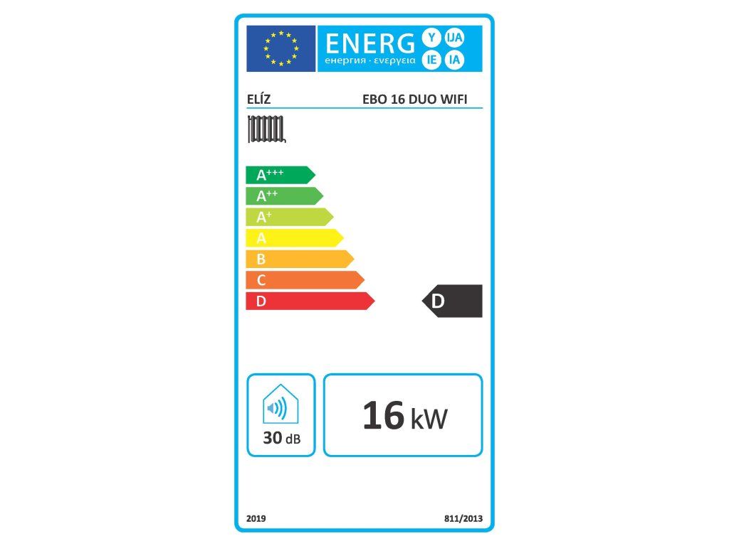 Elektrický závesný kotol ELÍZ EBO 16 DUO WIFI má výkon 16 kW s pripojením 3x400 V. S účinnosťou 98 % a prevádzkovou hlučnosťou nižšou ako 30 dB poskytuje používateľovi zdravší a energeticky úspornejší spôsob vykurovania priestorov a prípravy teplej úžitkovej vody (TÚV).
