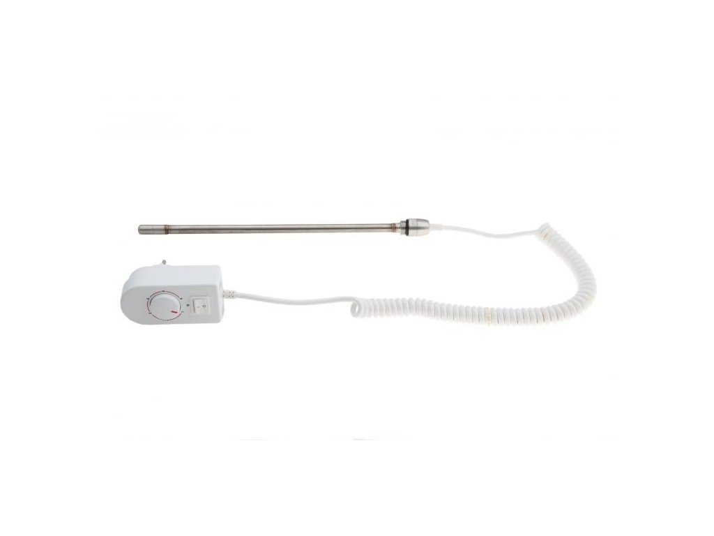 Elektrický ohrievač s navinutým bielym káblom ukončeným špeciálnou vidlicou UNISCHUKO s integrovaným regulátorom teploty v bielom priestore, spínačom a signalizačnou LED diódou.Dĺžka šnúry: 1,2 m (3,5 m v rozvinutom stave).