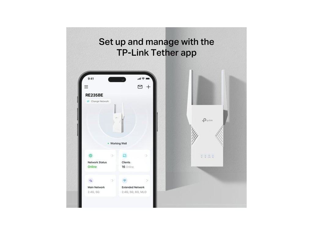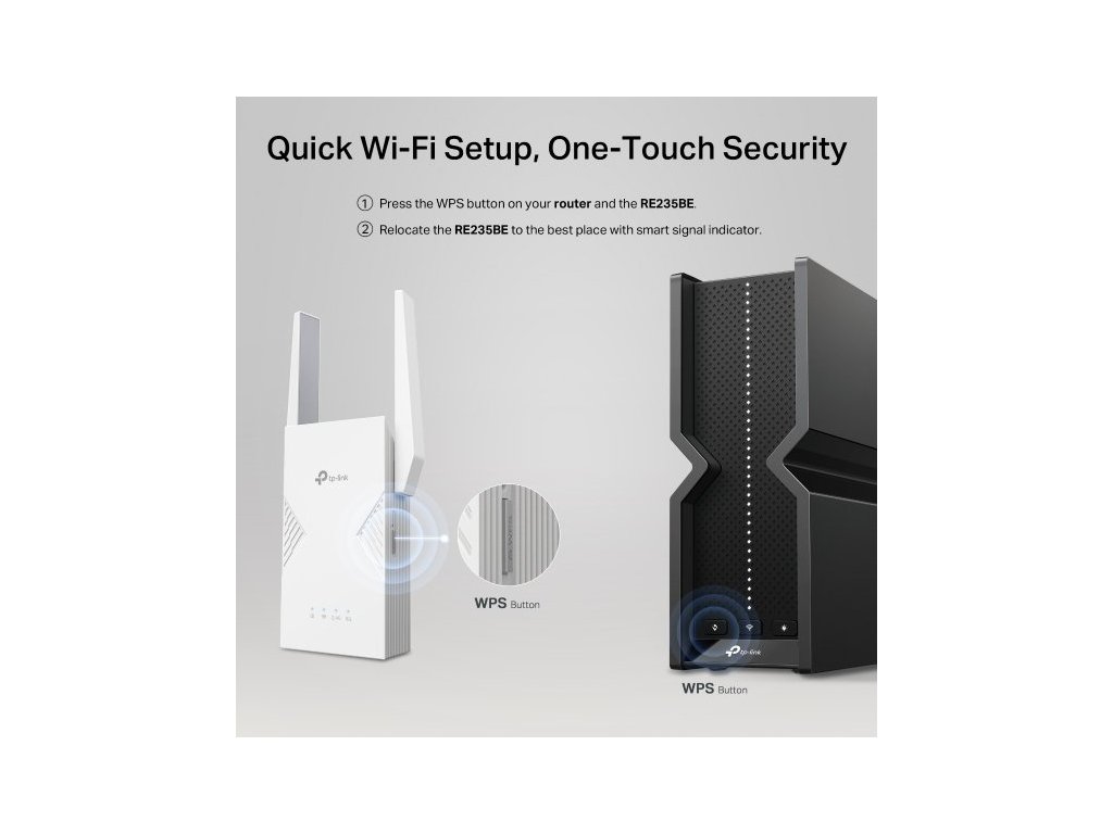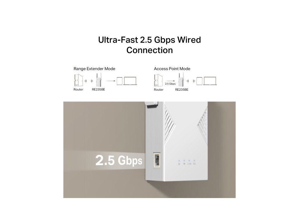 Extender WiFi TP-Link RE235BE WiFi 7 AP/Extender/Repeater, BE3600, 1x 2,5GLAN, pevná anténa, EasyMesh, 52449717
