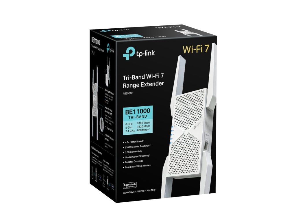 Extender WiFi TP-Link RE655BE WiFi 7 AP/Extender/Repeater, BE11000, 1x GLAN, pevná anténa, EasyMesh, 52449896