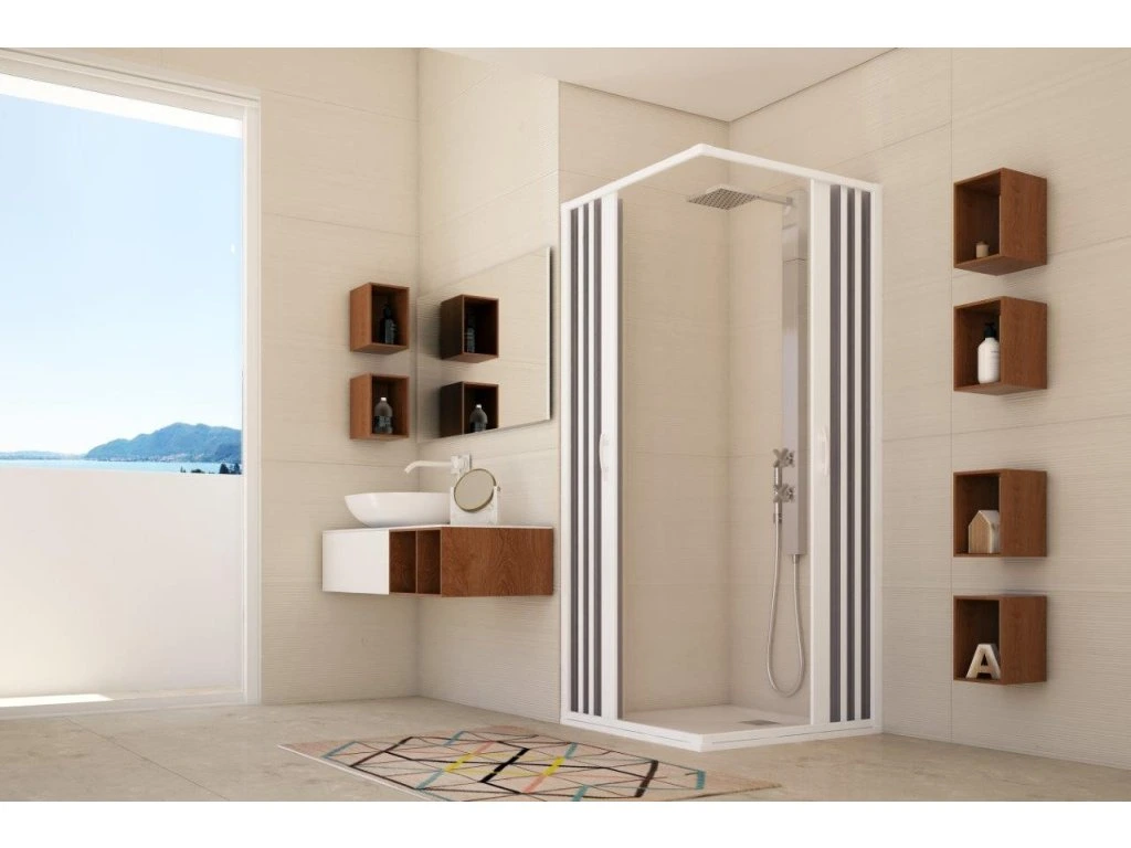 - štvorcová zástena so zatváraním do rohu (stredu)