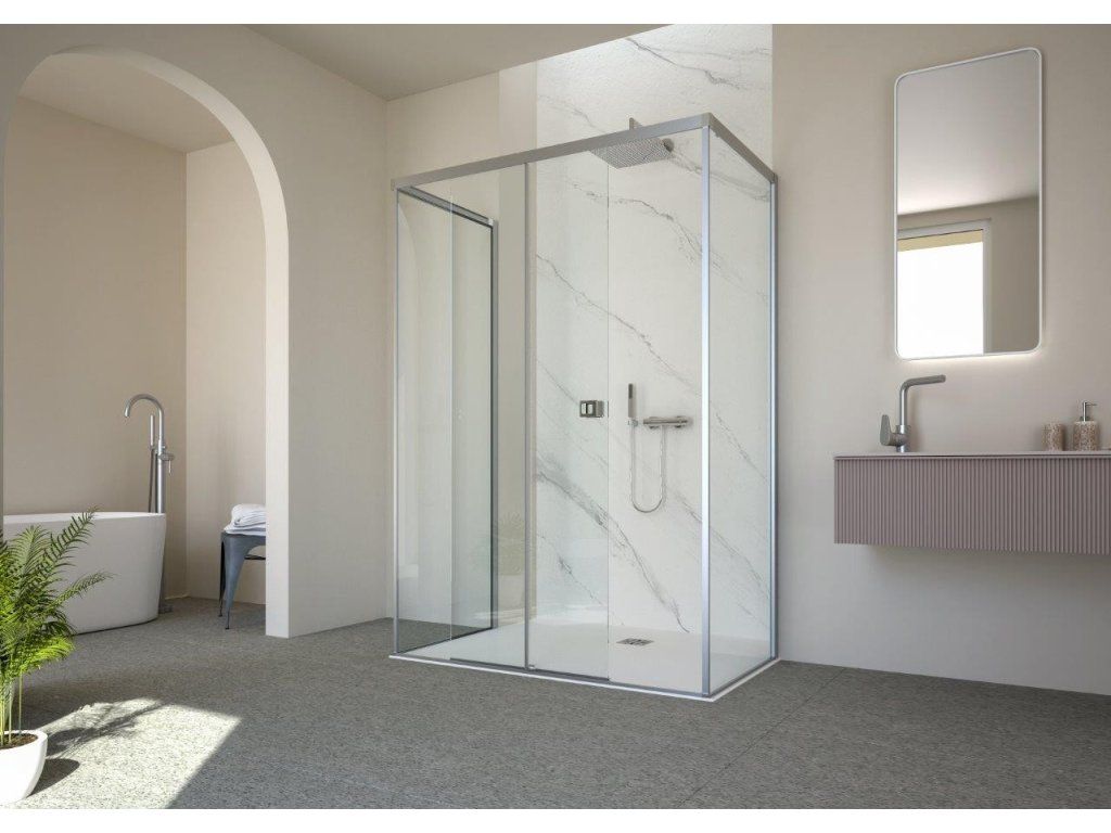 Posuvné sklenené steny riešia atypické vstupy v priestranných kúpeľniach. Vytvára veľmi luxusný dojem, ktorý je podporený výrazným madlom. Dvere sa dodávajú v ľavom alebo pravom prevedení. Bezpečnostné sklo je opatrené povrchovou úpravou AQUA CLEAN pre jednoduchšiu údržbu.