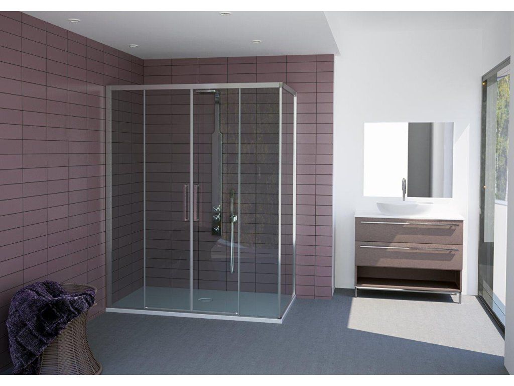 Bezbariérové posuvné štvordielne sklenené steny URBAN ESSENCE N2FS riešia atypické vstupy v priestranných kúpeľniach. Vytvára veľmi luxusný dojem, ktorý je podporený výrazným chrómovým madlom. Je možné dokúpiť jednu alebo dve bočné pevné steny ESSENCE F1AB, pomocou ktorých poskladáte praktický sprchovací kút. Pevná stena ESSENCE F1 je dodávaná v univerzálnom ľavom/pravom prevedení.