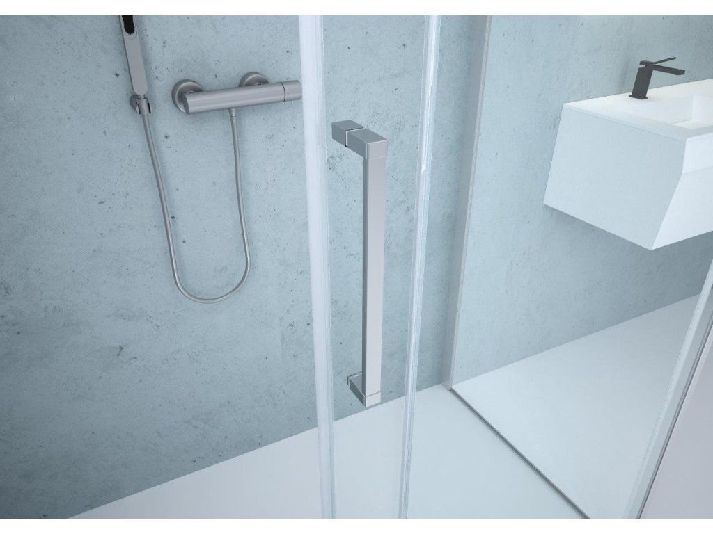 Bezbariérové posuvné štvordielne sklenené steny URBAN ESSENCE N2FS riešia atypické vstupy v priestranných kúpeľniach. Vytvára veľmi luxusný dojem, ktorý je podporený výrazným chrómovým madlom. Je možné dokúpiť jednu alebo dve bočné pevné steny ESSENCE F1AB, pomocou ktorých poskladáte praktický sprchovací kút. Pevná stena ESSENCE F1 je dodávaná v univerzálnom ľavom/pravom prevedení.