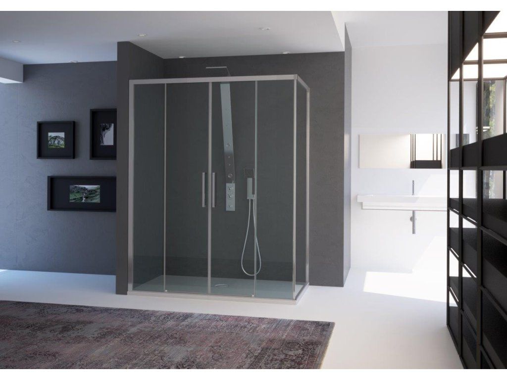 Bezbariérové posuvné štvordielne sklenené steny URBAN ESSENCE N2FS riešia atypické vstupy v priestranných kúpeľniach. Vytvára veľmi luxusný dojem, ktorý je podporený výrazným chrómovým madlom. Je možné dokúpiť jednu alebo dve bočné pevné steny ESSENCE F1AB, pomocou ktorých poskladáte praktický sprchovací kút. Pevná stena ESSENCE F1 je dodávaná v univerzálnom ľavom/pravom prevedení.