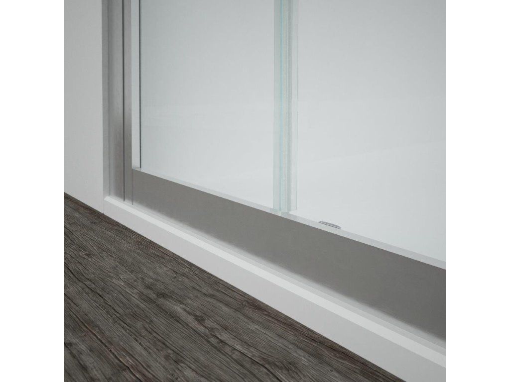 Posuvné sklenené steny riešia atypické vstupy v priestranných kúpeľniach. Vytvára veľmi luxusný dojem, ktorý je podporený výrazným chrómovým madlom. Dodáva sa v univerzálnom prevedení.