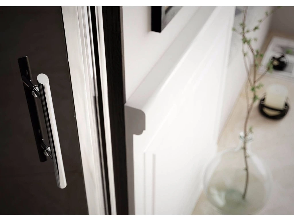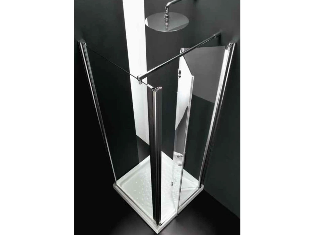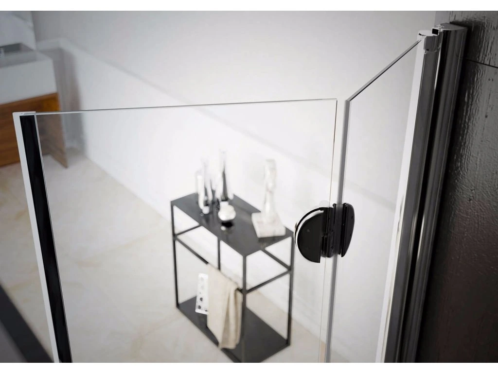 Elegantné bezrámové zalamovacie sprchové dvere pre niku . Dvere majú možnosť otvárania ako do sprchy, tak aj do priestoru kúpeľne. Nutné špecifikovať ľavé a pravé prevedenie. Bezpečnostné sklo je opatrené povrchovou úpravou AQVACLEAN , pre jednoduchšiu údržbu.