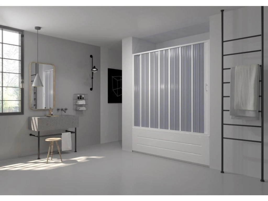 Originálny patentovaný systém Flex Vás prekvapí svojou rozmerovou a tvarovou variabilitou. Jeho univerzálnosť doceníte v bežných aj atypických kúpeľniach . Základ tvorí plastový rám , v ktorom je umiestnená zhrňovacia časť zložená z transparentných profilov-lamiel . Jednoznačnou výhodou je úspora miesta v malých kúpeľniach, ale aj odolnosť voči nárazom (vhodné pre hotely a penzióny) . Systém Flex si svoju popularitu získal vďaka prijateľnej cene, jednoduchej montáži a nadštandardnej záruke .