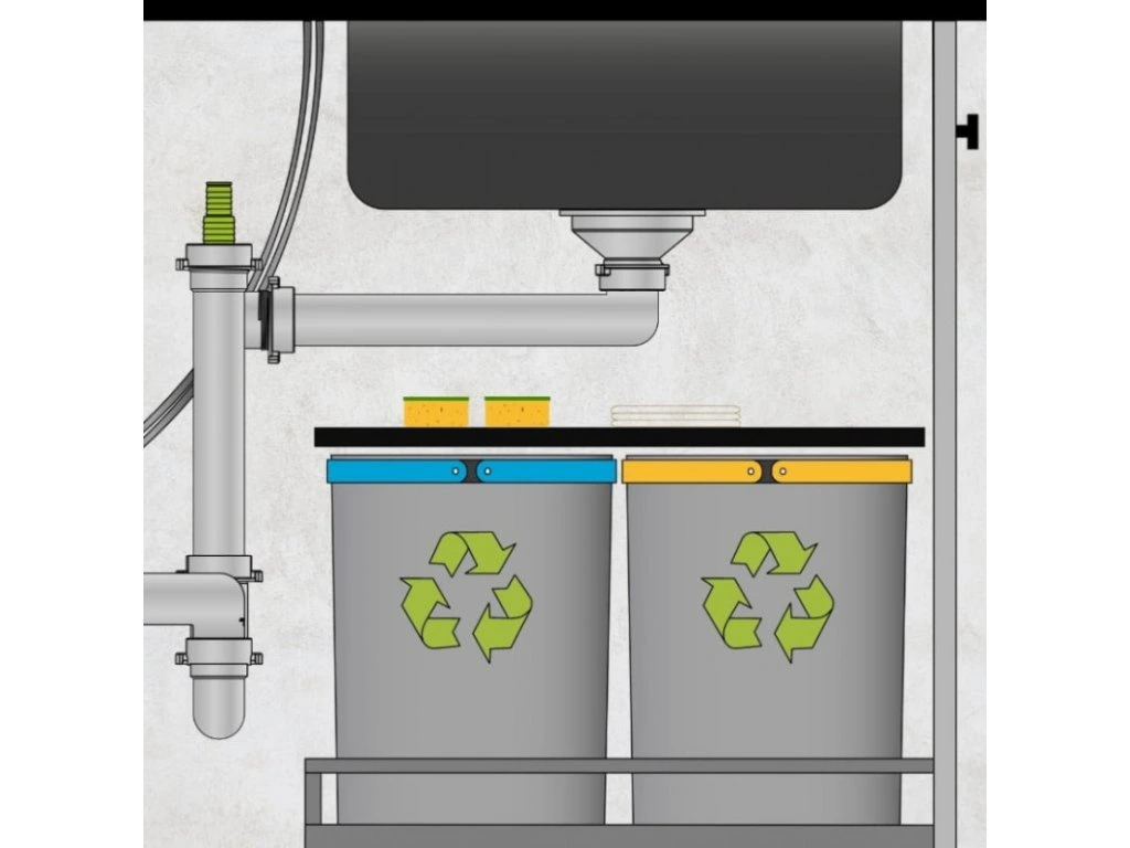 Drez sa dodáva s priestorovo úsporným sifónom, ktorý šetrí miesto pod drezom v skrinke. Vďaka tomu môžete pod drez umiestniť napríklad nádobu na separovaný odpad. Dodávaný sifón možno pripojiť aj k umývačke riadu alebo práčke.