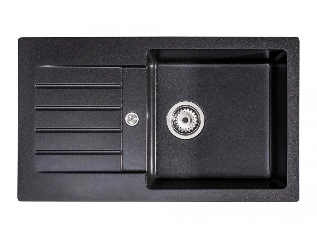 - Granitový kuchynský drez v čiernej farbe s odkapávačom