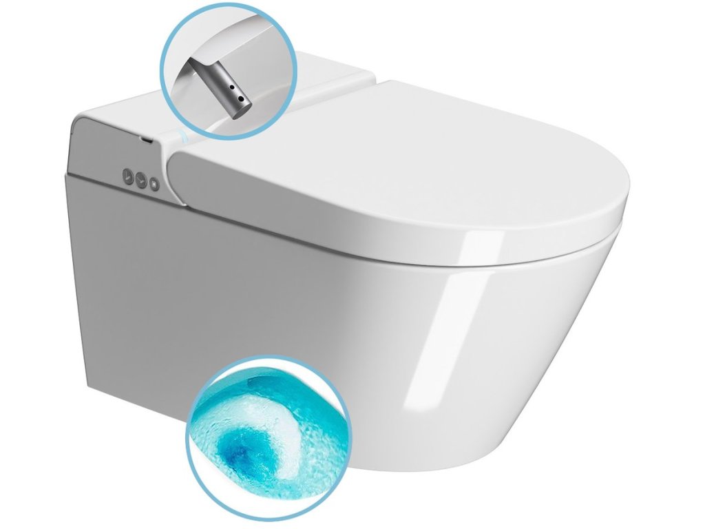 Závesná toaleta WCLEAN ponúka nový hygienický komfort. Po použití toalety sa na povel vypustí splachovacia tryska s nastaviteľným tlakom a teplotou vody.