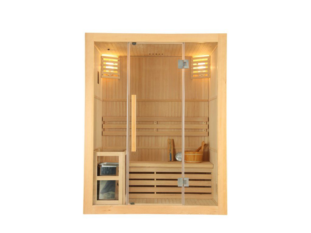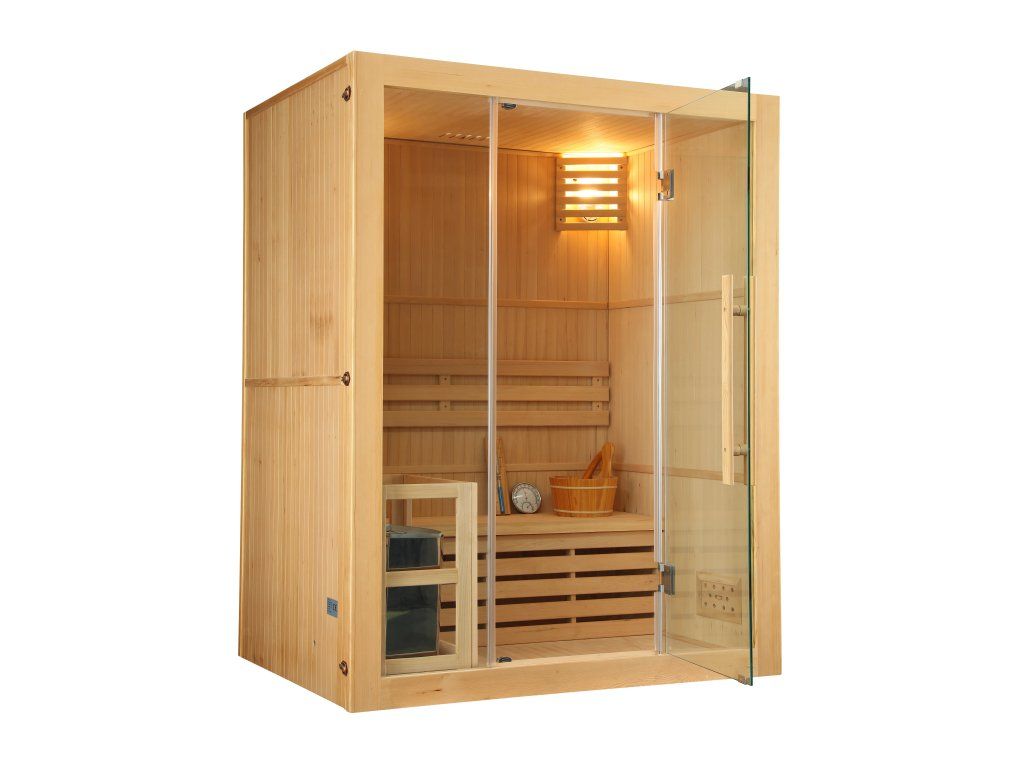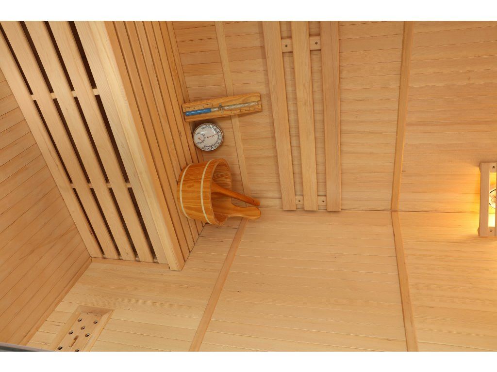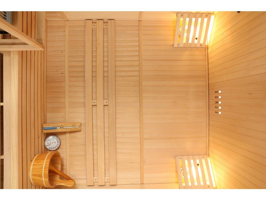 Táto sauna je vhodná do interiéru rodinného domu alebo bytu. Saunu odporúčame vybaviť kvalitnými kachľami s možnosťou nastavenia času zapnutia. Kamná môžete zapnúť okamžite alebo si nastaviť odložený čas zapnutia podľa svojich predstáv. Predhriatie sauny trvá približne 20 minút. Fínska sauna môže dosiahnuť teplotu až 90 °C. Počas saunovania môžete regulovať vlhkosť v saune polievaním lávových kameňov vodou.