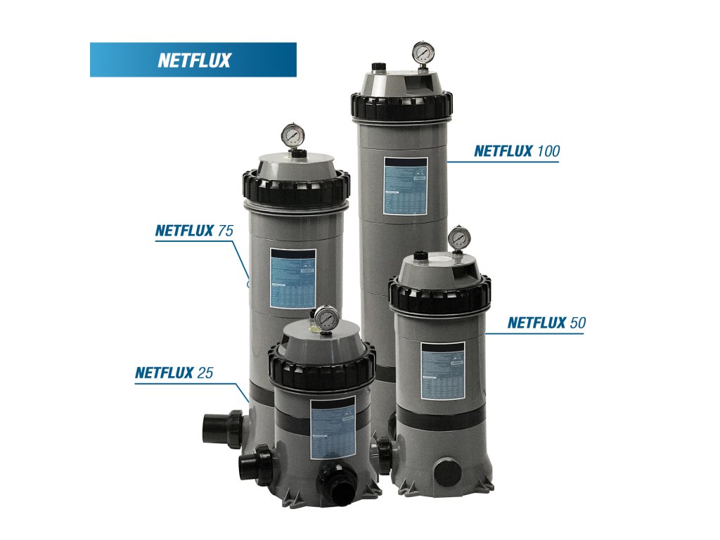 Filter Netflux je vybavený aj kvalitným manometrom, ktorý poskytuje jasný prehľad o prevádzkovom tlaku. Táto funkcia uľahčuje sledovanie stavu filtra a v prípade potreby prijímanie rýchlych opatrení, čím sa zabezpečí optimálna filtrácia vody vo vašom bazéne alebo vírivke.